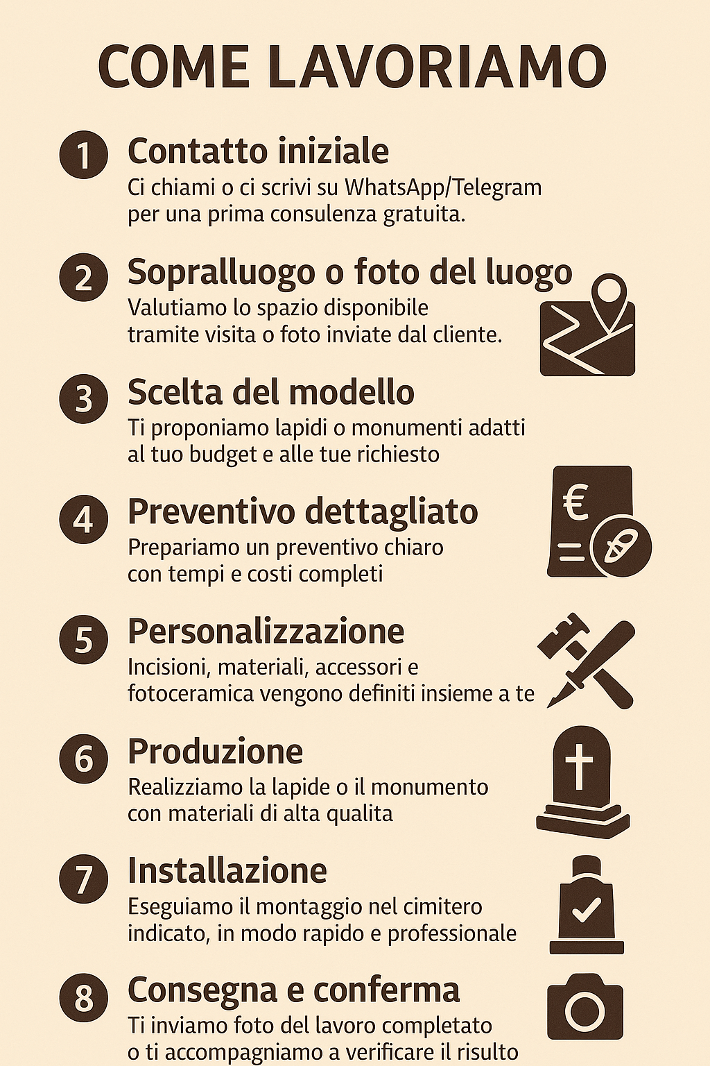 Il nostro obiettivo è offrire un servizio completo e professionale, capace di trasformare ogni richiesta in un’opera unica, creata con rispetto, competenza e massima attenzione ai materiali.